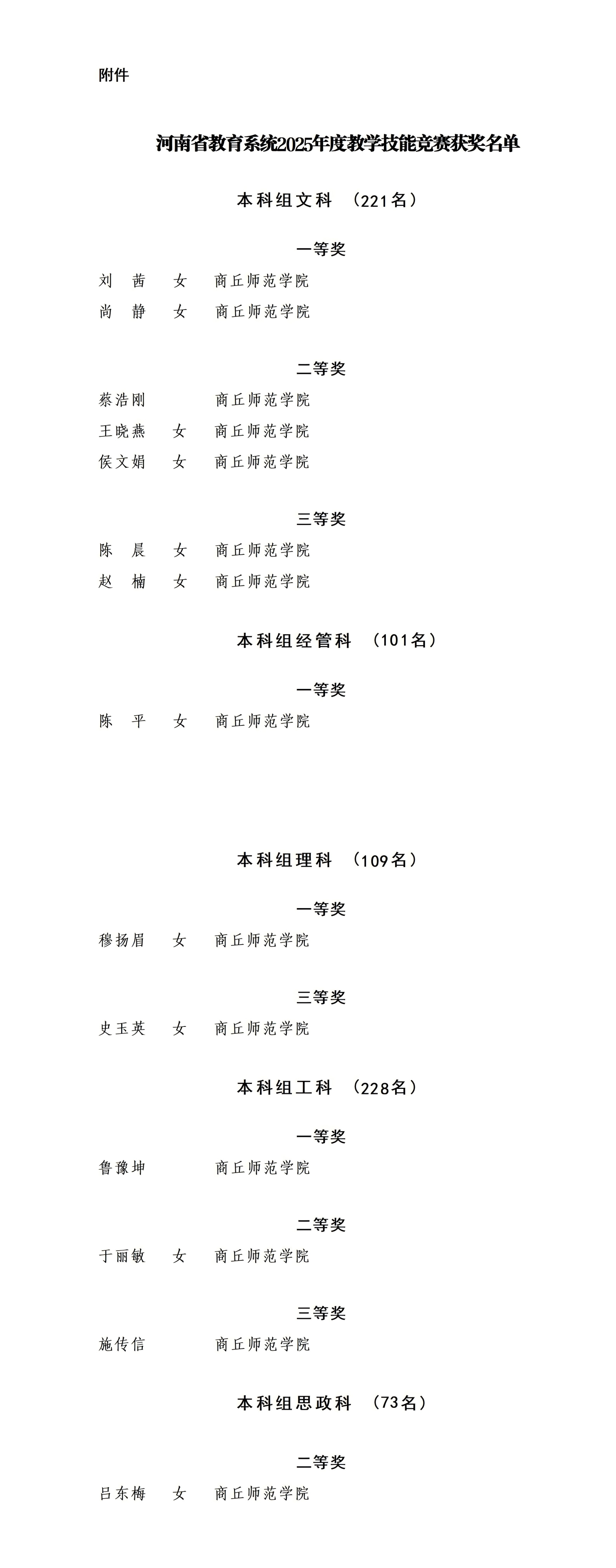 近日,河南省总工会、河南省教育厅联合印发《关于河南省教育系统2025年度教学技能竞赛获奖情况的通报》(豫工文〔2025〕73号),我校14名教师在本次竞赛中表现突出,被通报表彰,为学校争得了荣誉。